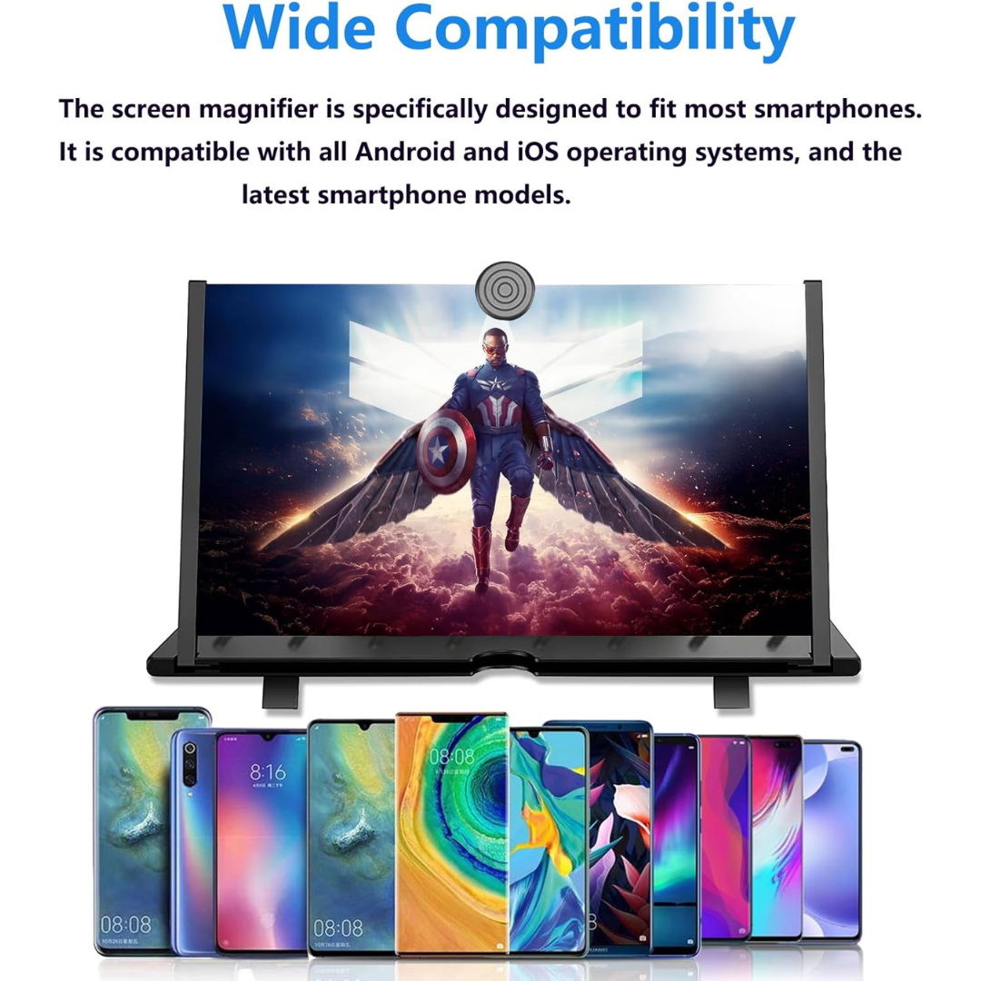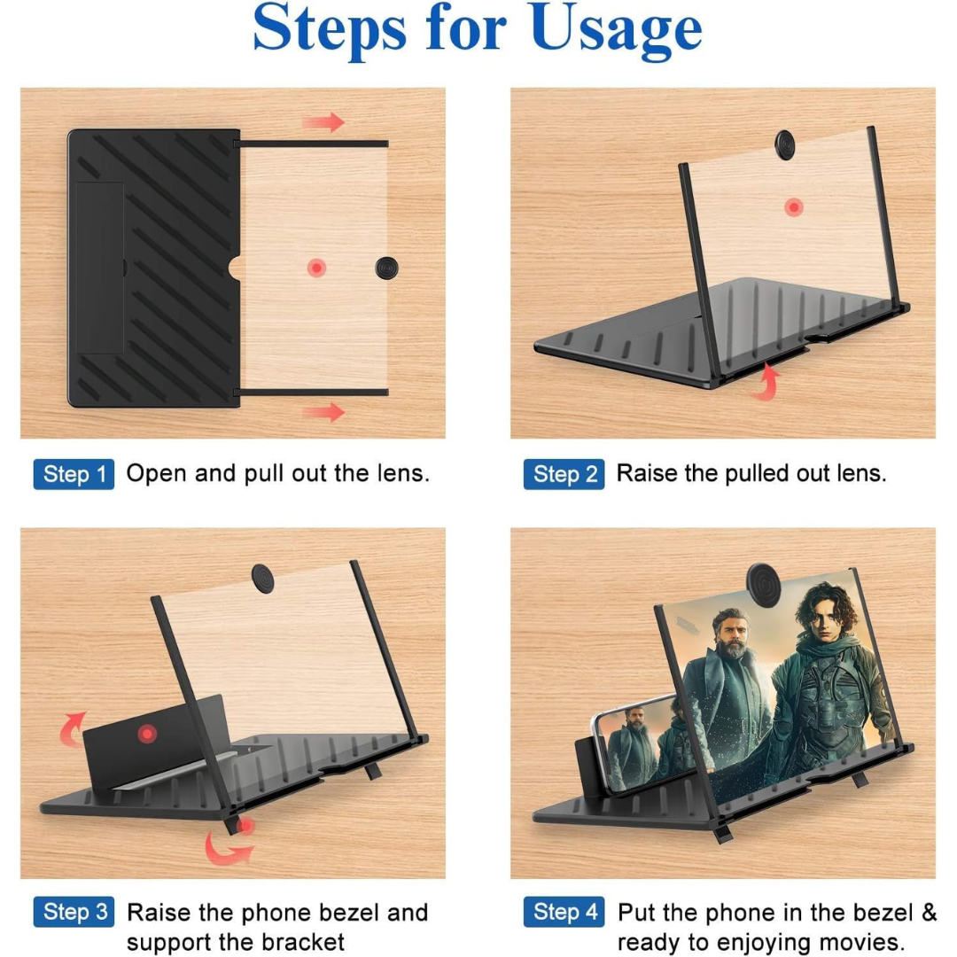 The Curved Screen Amplifier turns your smartphone into a cinematic experience, bringing your favorite movies, videos, and games to life on a crisp, enlarged HD display.